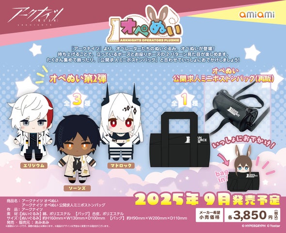• 『アークナイツ』オペぬい第2弾(エリジウム、ソーンズ、マドロック)と公開求人ミニボストンバッグが2025年9月発売予定