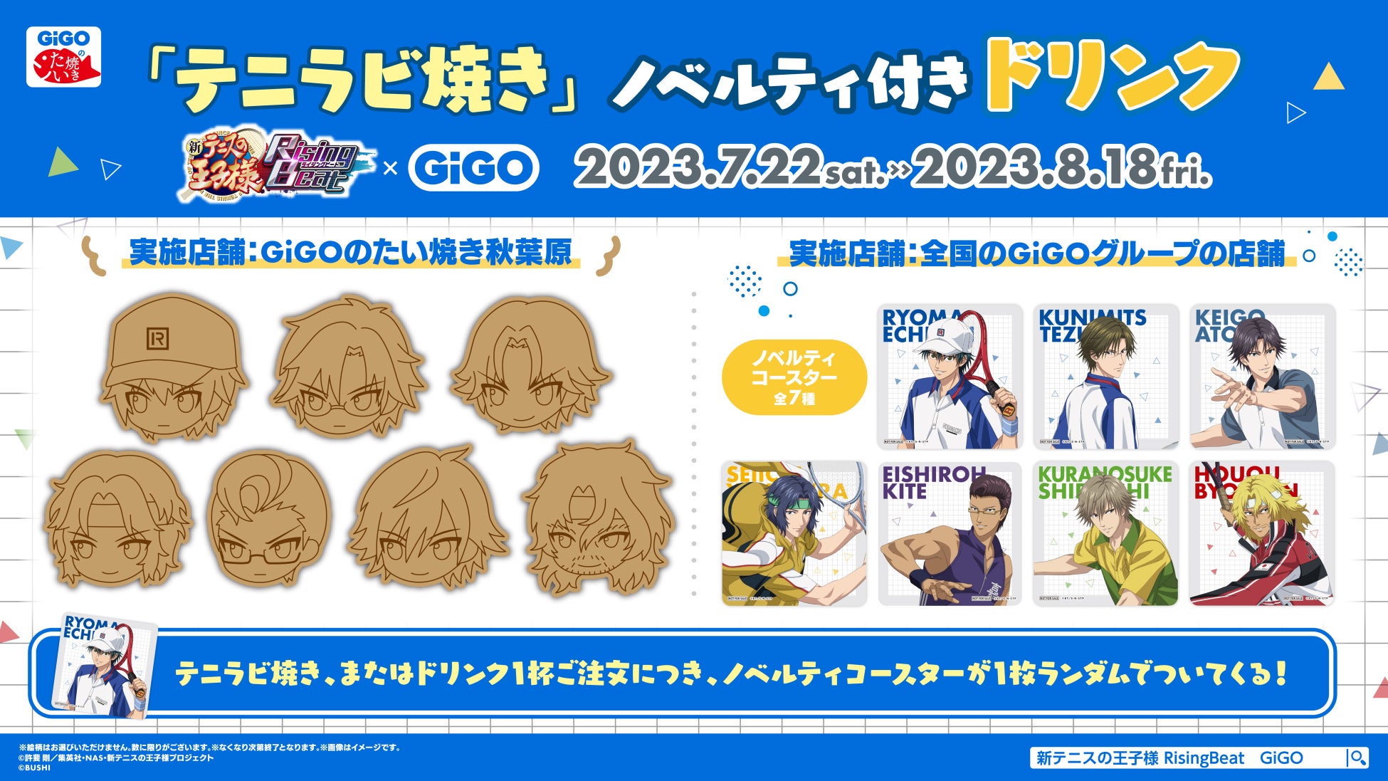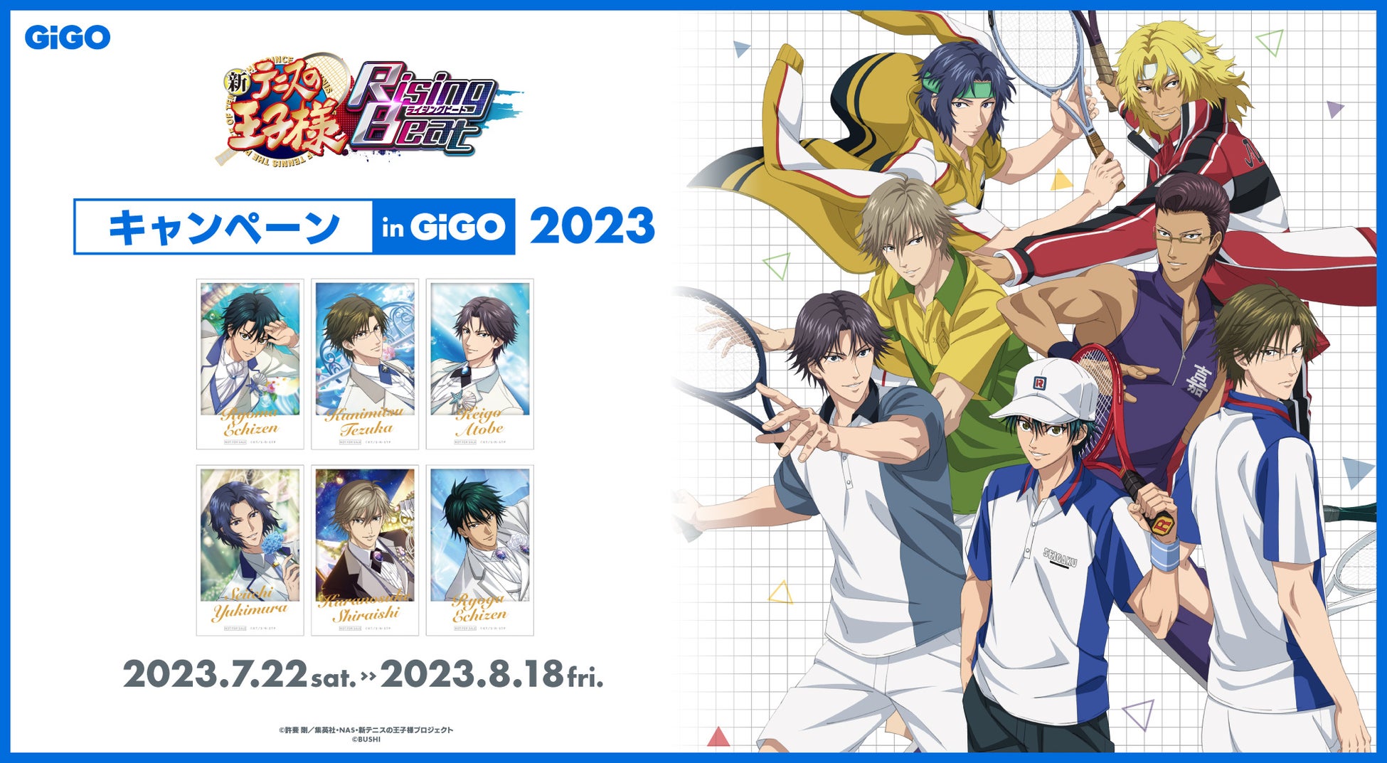 株式会社ブシロードクリエイティブは、7月22日からGiGOグループの一部店舗で『新テニスの王子様 RisingBeat キャンペーン in GiGO 2023』を開催します。