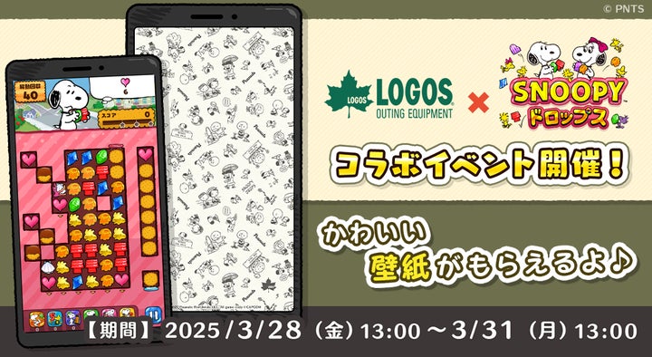 パズルゲーム『スヌーピードロップス』とアウトドアブランド「ロゴス」のコラボイベント第2弾が開催されます。