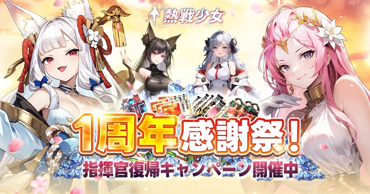 放置系RPG『熱戦少女』がサービス開始1周年を迎え、2025年3月28日から4月24日にかけて1周年記念イベントを開催中です。