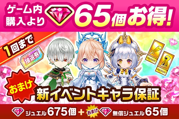 - 新キャラクターが登場するキャラガチャと、お得なジュエルパック販売中
