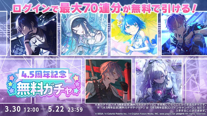 さらに、4.5周年記念として、多数の新曲追加や、ログインキャンペーン、ガチャ、イベントなどが実施されます。