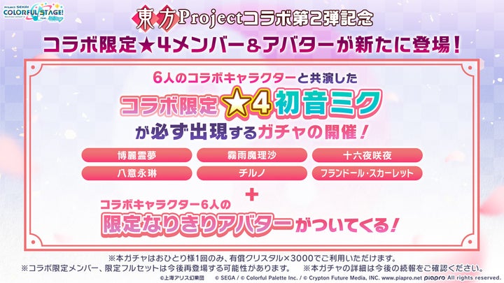 - 「東方Project」コラボ第2弾開催、新曲3曲追加