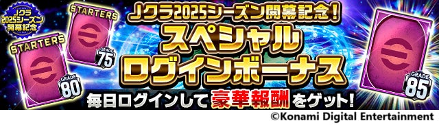 コナミデジタルエンタテインメントは、モバイルサッカーゲーム『Jリーグクラブチャンピオンシップ』(Jクラ)で、2025シーズン開幕記念キャンペーンを開催しています。