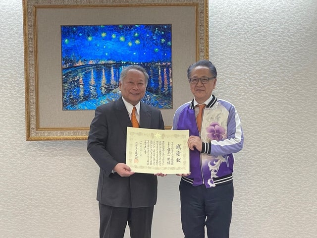 寄付贈呈式では、市長から両社に感謝状が贈呈されました。