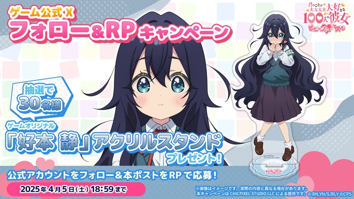 事前登録者5万人突破を記念したアイテム報酬の配布や、公式Xでのプレゼントキャンペーン(好本 静のアクリルスタンドが抽選で30名に当たる)も実施中です。