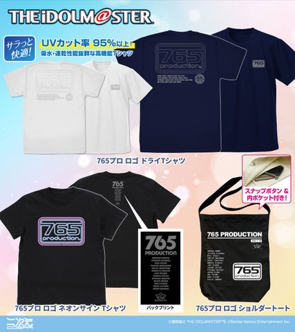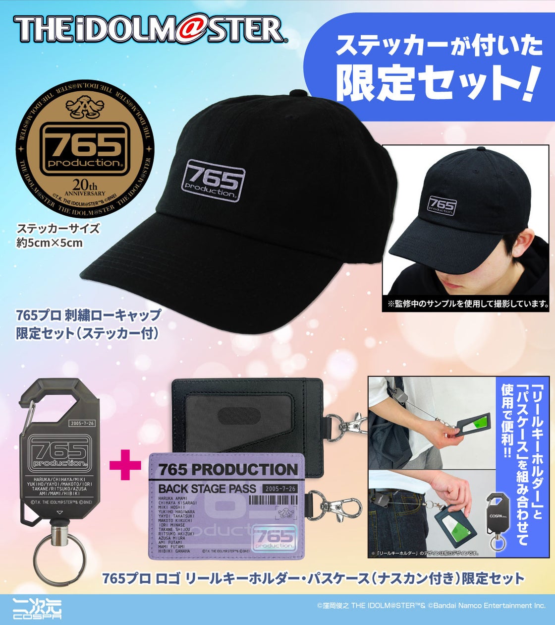 ★限定★765プロ 刺繍ローキャップ限定セット(ステッカー付)、★限定★765プロ ロゴ リールキーホルダー・パスケース(ナスカン付き)限定セット、765プロ ロゴ ドライTシャツ、765プロ ロゴ ネオンサイン Tシャツ、765プロ ロゴ ショルダートート