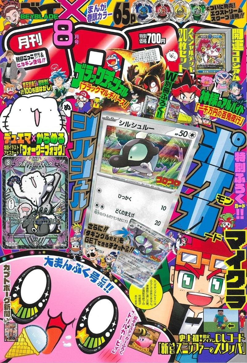「月刊コロコロコミック8月号」が発売されました!注目のふろくはポケカ「シルシュルー」です。