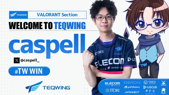 プロeスポーツチーム「TEQWING e-Sports」がVALORANT部門を設立し、caspell選手が新規加入しました。