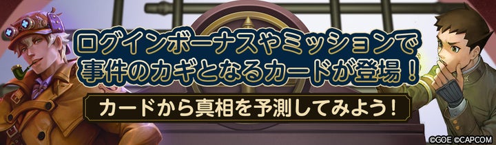 新カードセット実装を記念して、ログインボーナスやミッション、シャーロック・ホームズを題材にした推理イベント「論理と推理の実験劇場」が開催されます。