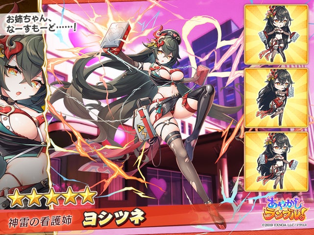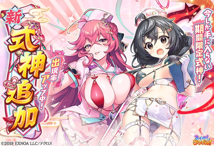 DMM GAMESの迎撃型爽快スキルバトルRPG『あやかしランブル!』にて、4月1日より期間限定で新式神「★5 マキ」「★5 チハヤ」が登場、さらに「★5 ヨシツネ」が手に入る逢魔襲来イベント「性癖診療 ドキドキほすぴたる」が開催されました。