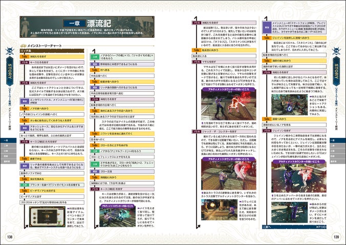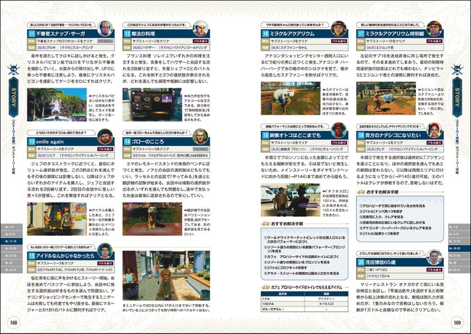 メインストーリーはもちろん、サイドミッション、プレイスポット、バトルシステム、アイテムデータなどを網羅した内容で、エンディングまでの攻略フローや、アクションの解説、マップに隠されたアイテムの場所なども掲載されています。