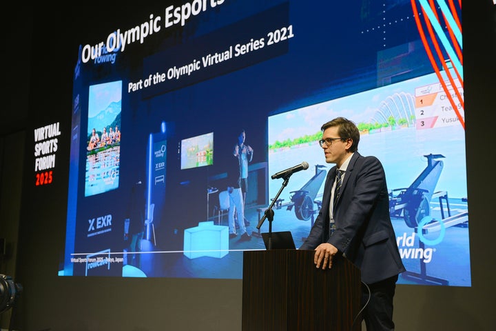 JSC、日本eスポーツ連合(JeSU)、ワールドローイング、世界野球ソフトボール連盟(WBSC)、カプコンなどから、それぞれの取り組みや事例が発表され、バーチャルローイングの実演なども行われました。