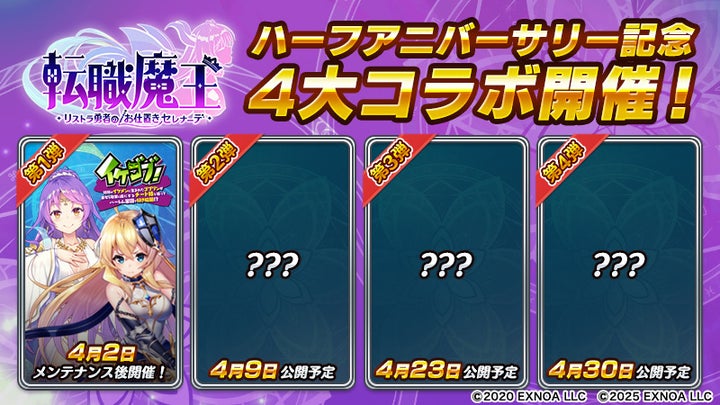 DMM GAMESの『転職魔王~リストラ勇者のお仕置きセレナーデ~』が、2025年4月17日のハーフアニバーサリーを記念して、4大コラボと豪華キャンペーンを実施します。