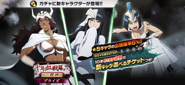 さらに、期間中最大100連無料ガチャやログインボーナス、そして新★5キャラクターが登場する「千年血戦篇プライズガチャ―三獣神―」も開催中です。