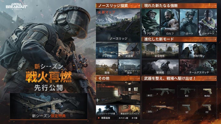 Tencent GamesのMoreFun Studios Groupが開発したPC版略奪系タクティカルFPS『Arena Breakout:Infinite(アリブレPC)』の新シーズン「戦火再燃」が4月29日(火)に開幕します。