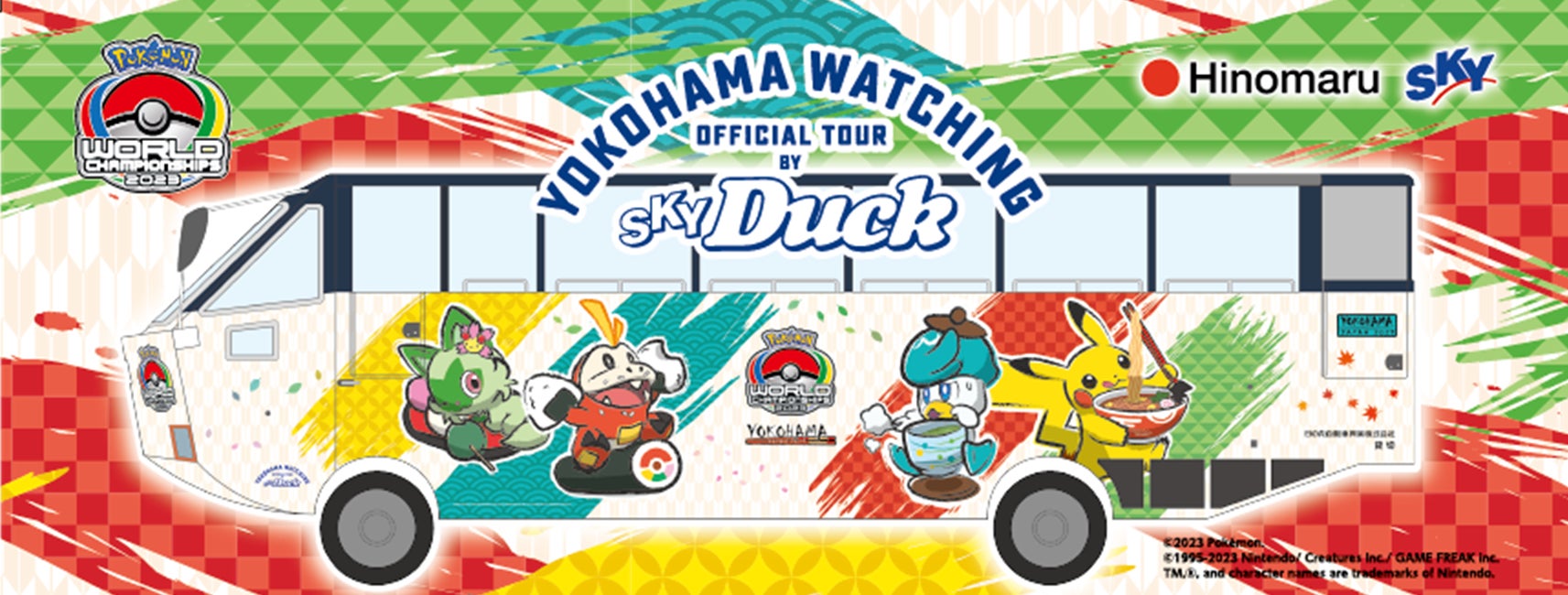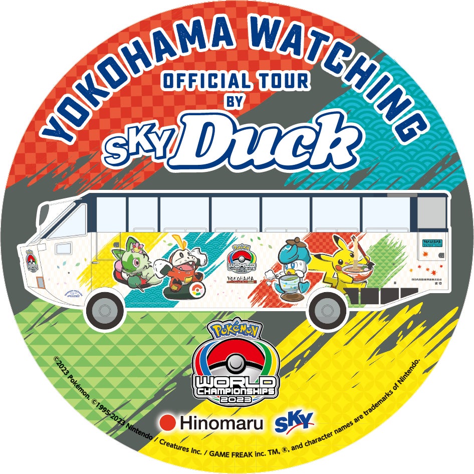 日の丸自動車興業は、ポケモンワールドチャンピオンシップス2023とコラボレーションし、横浜で運行している水陸両用バス「スカイダック」をポケモンWCS2023デザインで運行しています。