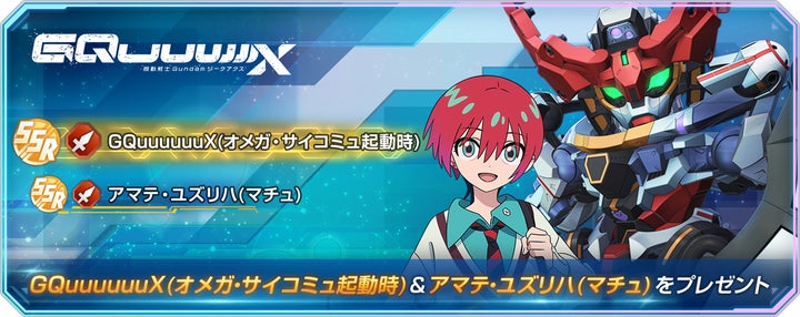 ゲーム内では『機動戦士ガンダムGレコ』のGセルフ(オメガ・サイコミュ起動時)とアマテ・ユズリハ(マチュ)がプレゼントされ、早期プレイユーザー限定キャンペーンも実施されます。