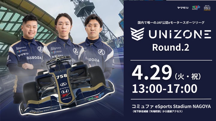 国内唯一のJAF公認eモータースポーツリーグ「UNIZONE」第2戦が、4月29日(火祝)13時~17時にコミュファeSports Stadium NAGOYAで開催されます。