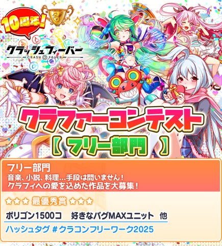 - 『クラッシュフィーバー』10周年記念コンテスト開催