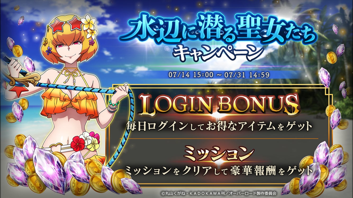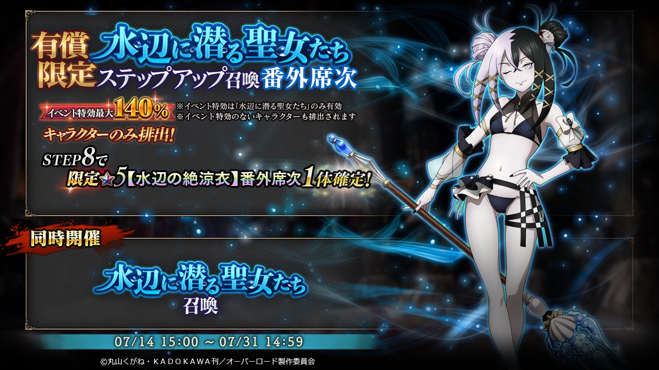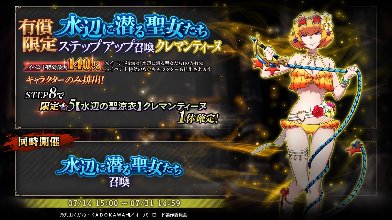 7/14から開催されるイベント『水辺に潜る聖女たち』では、新たな脅威に立ち向かうために水陸両用最終決戦兵器「水着」を纏う聖女たちが登場します。