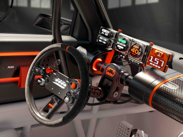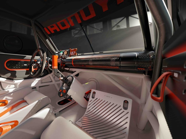 インテリアはバケットシート、ロールケージ、専用のインストルメントクラスターなど、最小限の構成で没入感あるドライブ体験を実現しています。