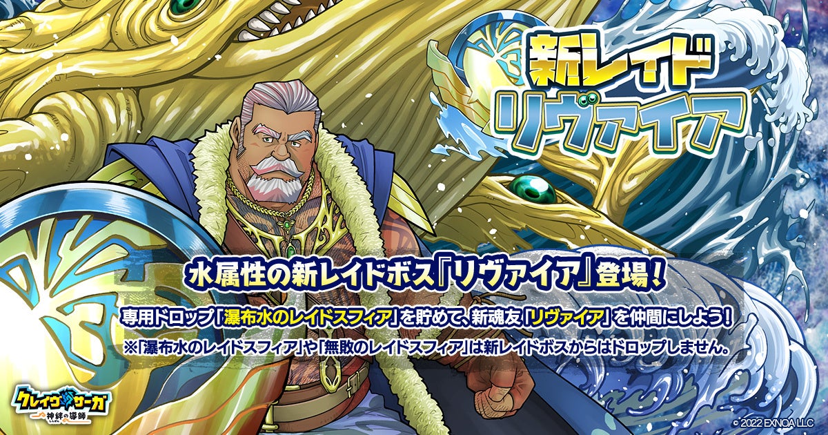 - 水属性新レイドボス「リヴァイア」が登場し、新魂友「リヴァイア」を仲間にできるキャンペーン開催