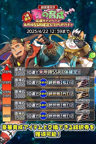 - 春の育成応援キャンペーン開催(EXP2倍、AP消費半減、ログインボーナスなど)