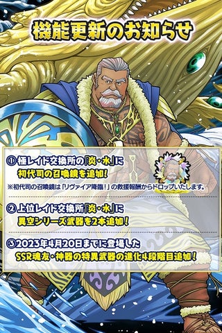 レイド機能も更新され、「初代司の召喚鏡」や異空シリーズ武器の追加などが行われています。