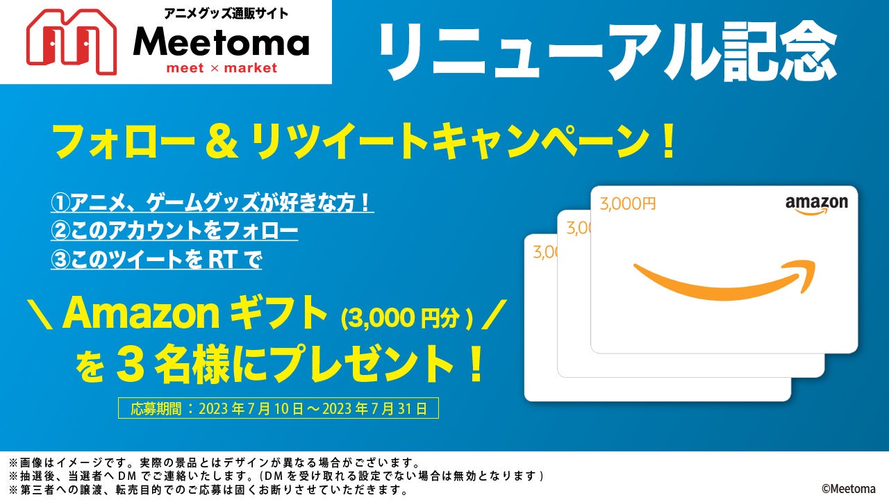 キャンペーン期間は2023年7月10日から31日までで、アニメ・ゲームグッズが好きな方は公式Twitterアカウントをフォローし、対象ツイートをリツイートすることで抽選でAmazonギフトカードがプレゼントされます。