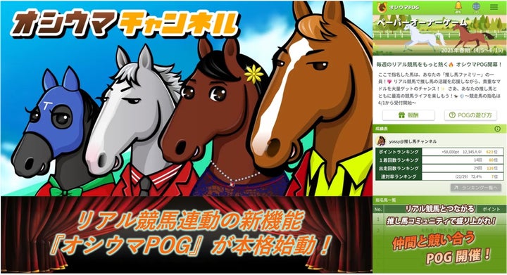 NINJIN株式会社は、競馬ファン向けゲーミングSNS『オシウマチャンネル』に、実在の競走馬を仮想の持ち馬として育て、レース結果を共有して競い合う新機能『オシウマPOG』を実装しました。