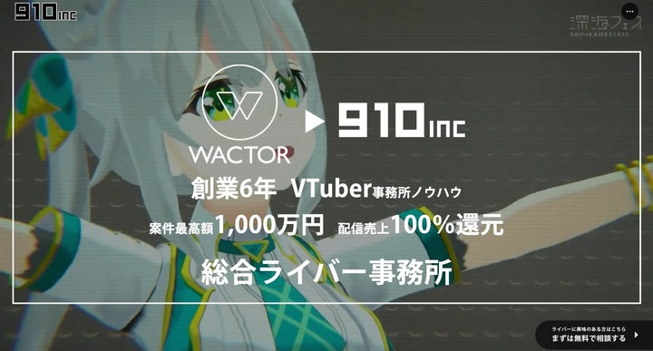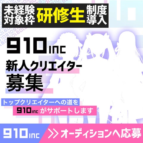910incという関連会社では、新人VTuberオーディションも複数展開しています。