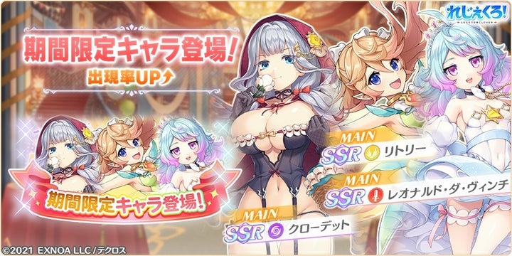 さらに、「クローデット」、「レオナルド・ダ・ヴィンチ」、「クピド」のメルヘン衣装バージョンも登場し、出現率アップガチャも開催されます。