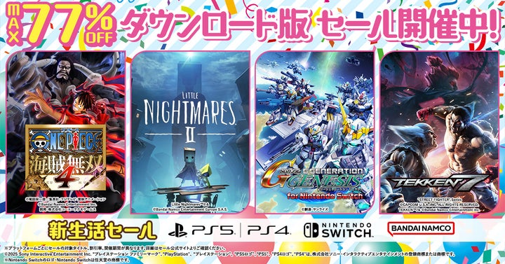 株式会社バンダイナムコエンターテインメントは、PlayStation Storeとニンテンドーeショップでダウンロード版ゲームの大規模セールを開催中です。