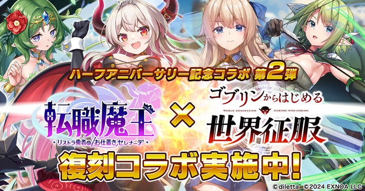 DMM GAMESの『転職魔王~リストラ勇者のお仕置きセレナーデ~』で、ハーフアニバーサリー記念4大コラボ第2弾として『ゴブリンからはじめる世界征服』との復刻コラボが開催されます。