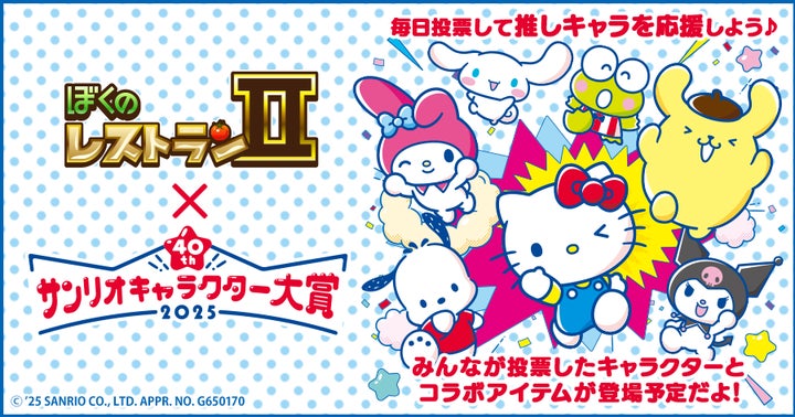 enishのレストラン経営シミュレーションゲーム『ぼくのレストランⅡ』とサンリオの『第40回サンリオキャラクター大賞』のコラボレーションが2025年4月10日から開始されました。