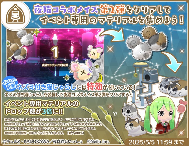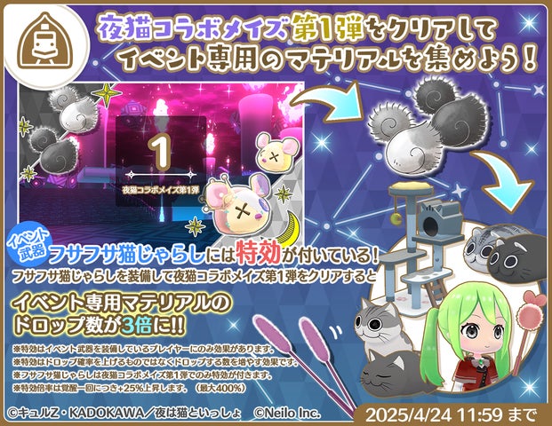• イベント専用クエスト「夜猫コラボメイズ」でイベント専用マテリアルを獲得可能
