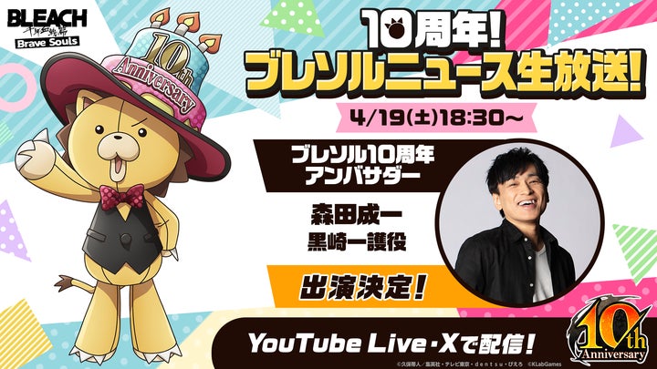さらに、4月19日には10周年記念の生放送が予定されており、黒崎一護役の森田成一さんが出演します。