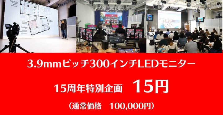 クローク株式会社は、創業15周年を記念して、300インチLEDスクリーン(通常価格10万円)を1日15円でレンタルできるキャンペーンを実施します。
