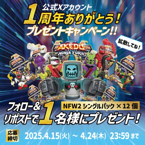 - 「AKEDO NINJAFURY シングルパック W2」1BOX(12個入り)を抽選で1名様にプレゼント