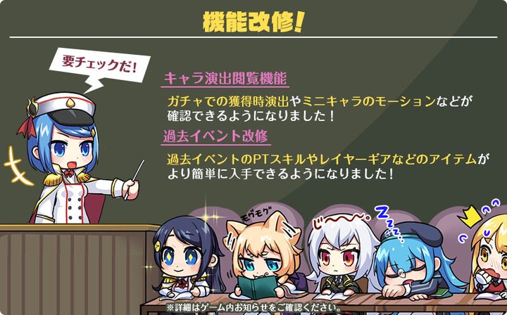 - キャラ演出閲覧機能、過去イベント改修など機能強化
