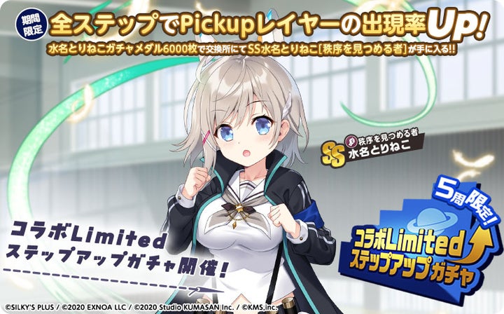 コラボガチャでは、空丘夕陽、霜雪しほん、星都チエミ、菊間塔子、水名とりねこ、月角島ヴィカといった新レイヤーの出現率がアップします。