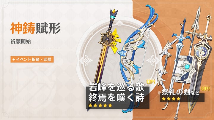 同時に、限定★5武器が登場するイベント祈願・武器「神鋳賦形」も開催。