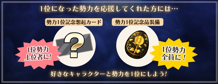 1位勢力のキャラクターが描かれた想起カードや装備が報酬として用意されています。