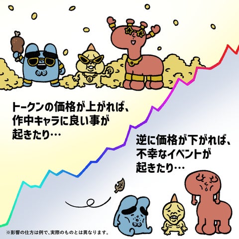さらに、トークンの価格が漫画の作中世界に影響を与えたり、メタバースゲーム内でトークンが活用できるなど、新しいキャラクター育成モデルを目指しています。