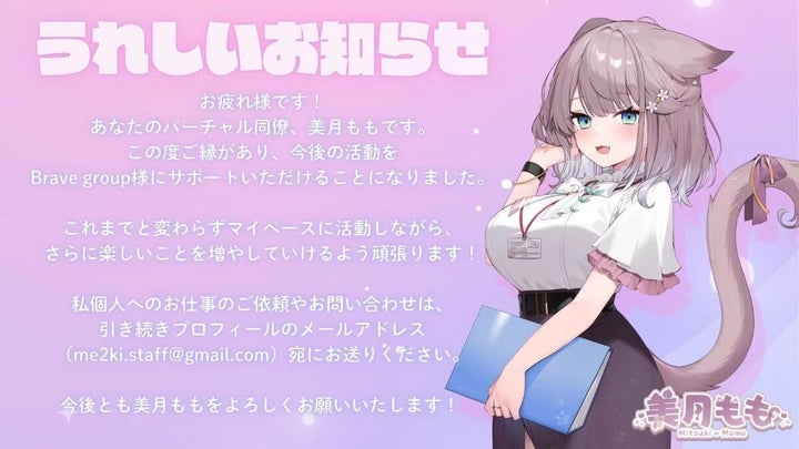 2025年4月1日よりMUGEN LIVEに正式加入し、Brave groupのサポートを受けながら、企業タイアップやグッズ販売などを拡大予定。