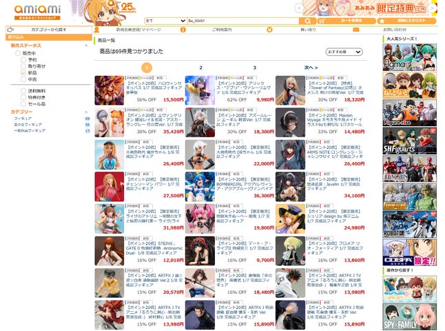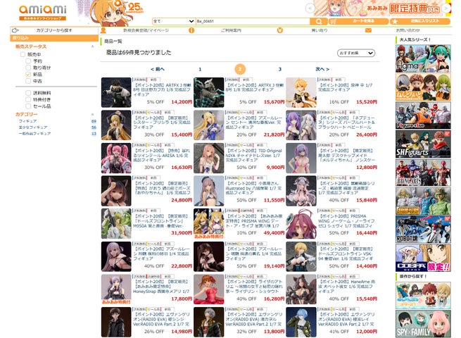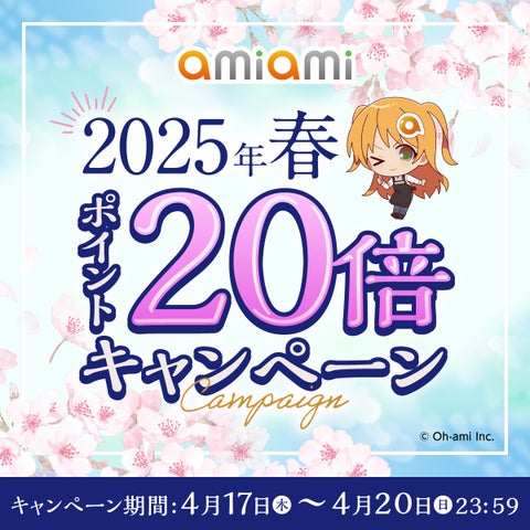 ホビー通販大手あみあみは、2025年4月17日(木)~20日(日)23:59まで、オンラインショップで『2025年春 ポイント20倍キャンペーン』を実施します。