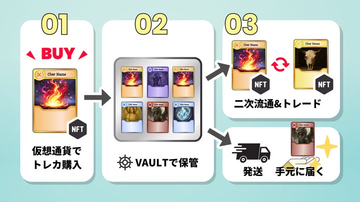 TCG STOREは、Oasys基盤のTCG Verseチェーン上で発行され、NFT保有者は実物のカードを償還申請できます。
