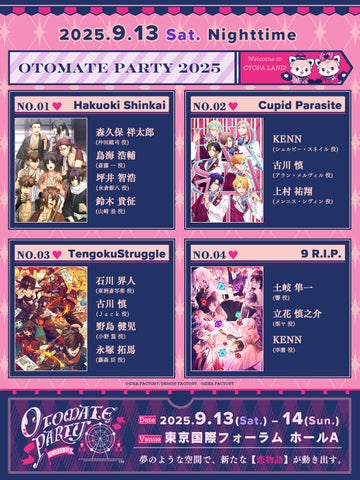 - 2025年9月13日・14日、東京国際フォーラム ホールAにて「オトメイトパーティー2025」開催