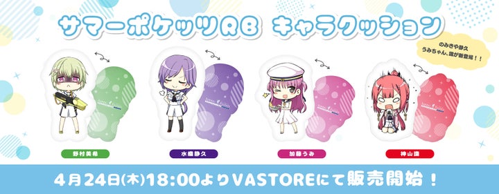 4月24日18時より、『Summer Pockets REFLECTION BLUE』(以下Summer Pockets RB)のグッズ(イヤホンポーチ、アクリルスタンドなど)の再販と、『Summer Pockets RB』キャラクッション(野村美希、水織静久、加藤うみ、神山識)、『やがてひとつになる道』の新作グッズ(アクリルスタンド、背景台座付きコンプリートセット、デスクマット)が発売されます。